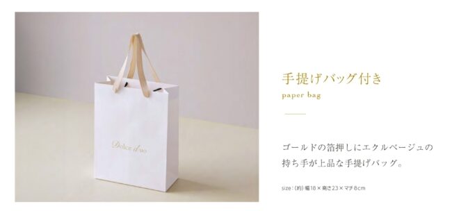 プチギフトや席札席次表などを入れて持って帰るのにぴったりな手提げバック付き