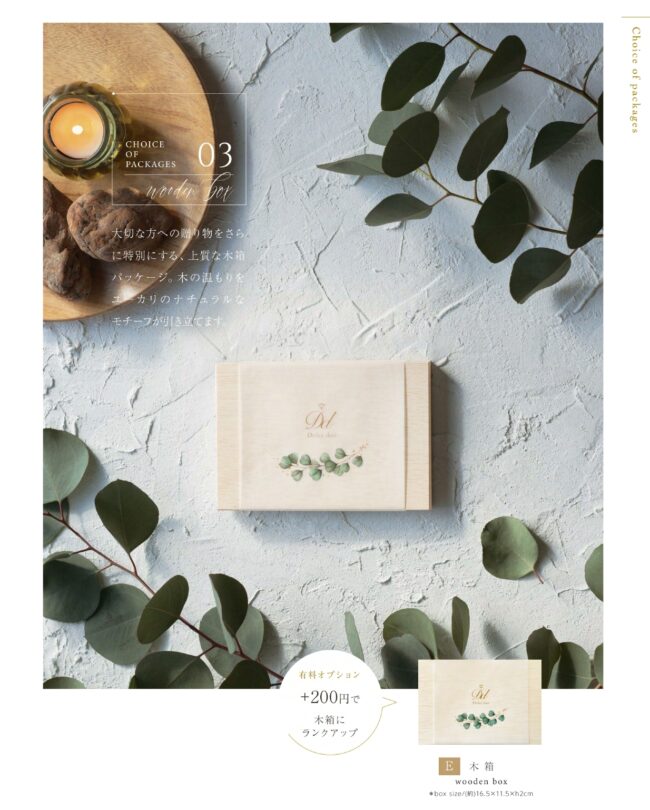 ※パッケージで木箱を選ばれた場合は、システム料が+200円となります。